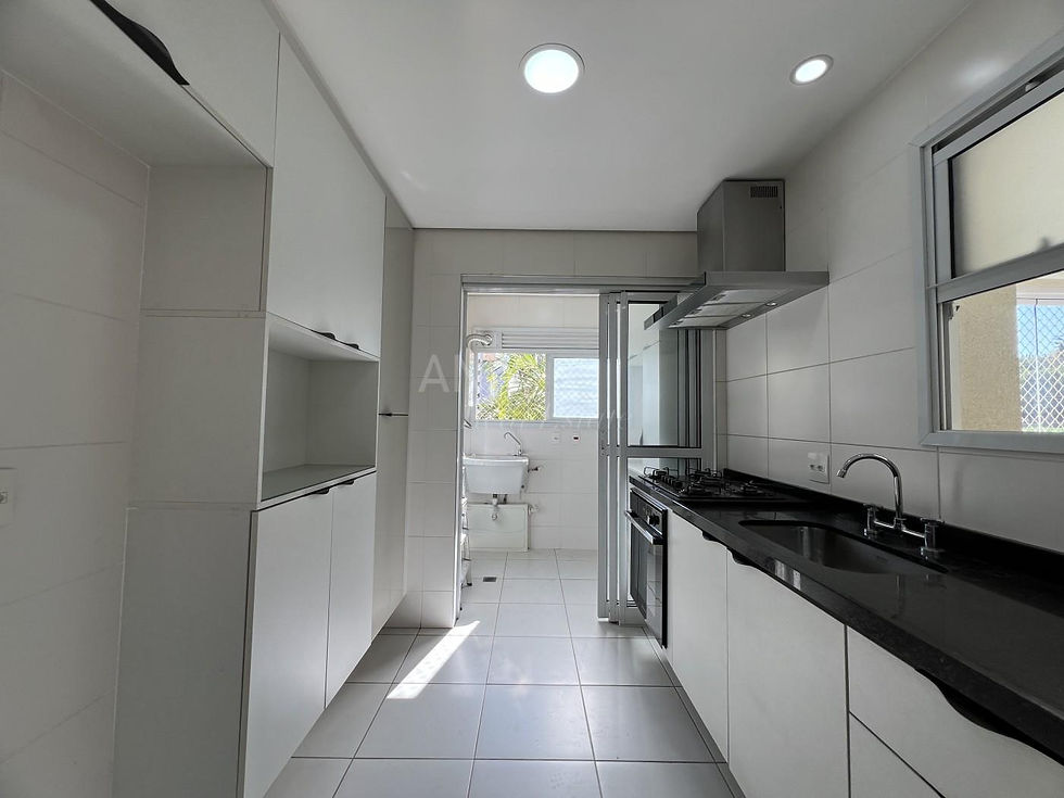 A cozinha conta com planejados, cooktop, forno embutido e coifa, além da vantagem de ter a área de serviço independente, separada por porta de correr — garantindo mais organização e privacidade. A varanda gourmet é envidraçada, perfeita para momentos de lazer, e a suíte master dispõe de luminárias pendentes que valorizam a decoração.